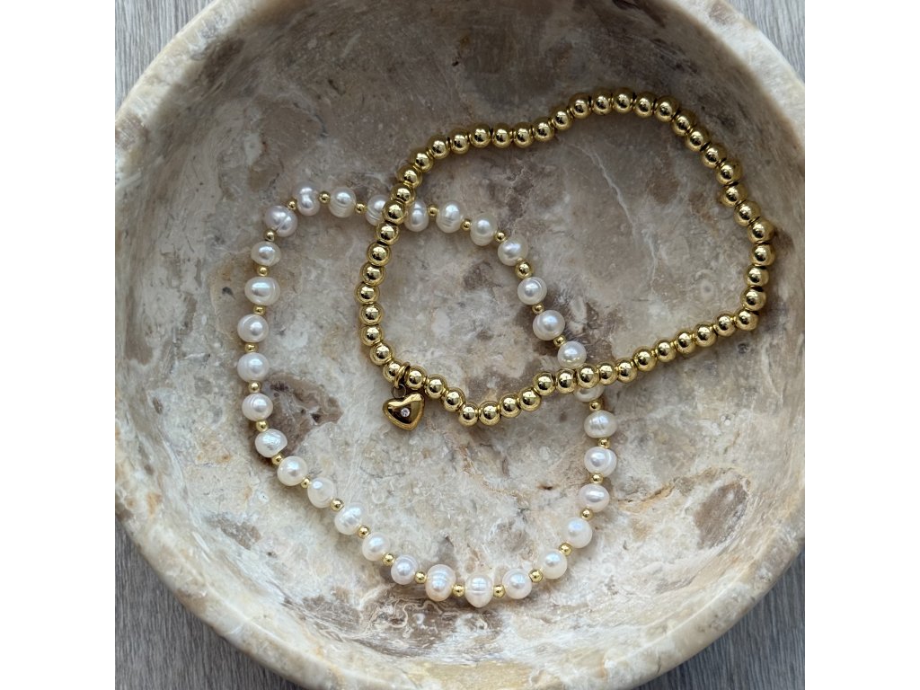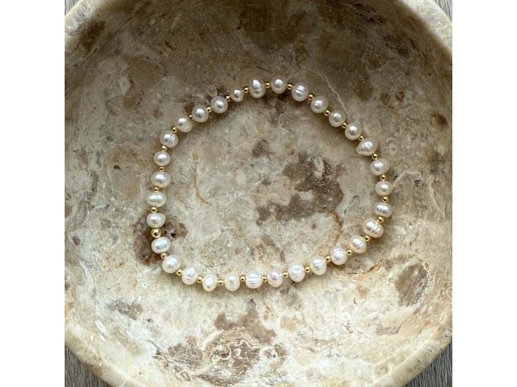 Pearls & mini gold je náramek z pravých říčních perel a drobných zlatých korálků z nerezové oceli.
