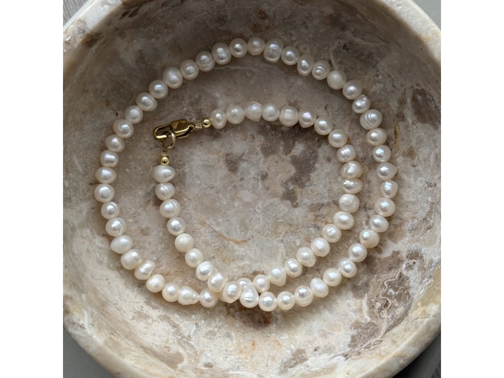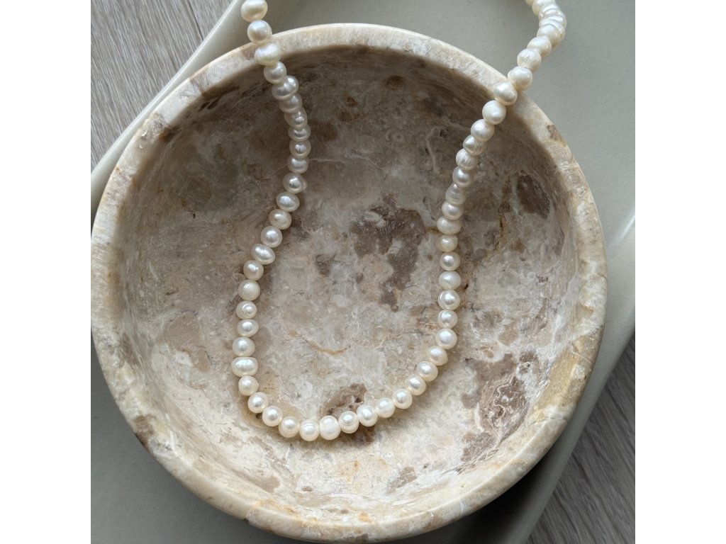 Materiál: bílé říční perly a chirurgická ocel