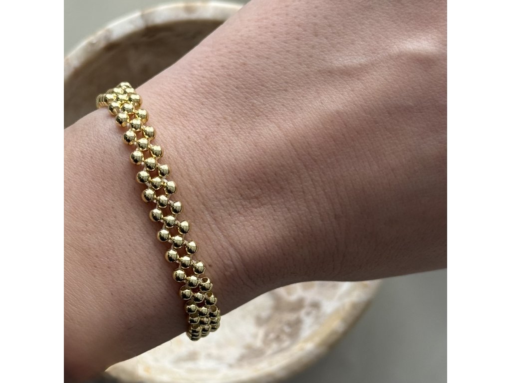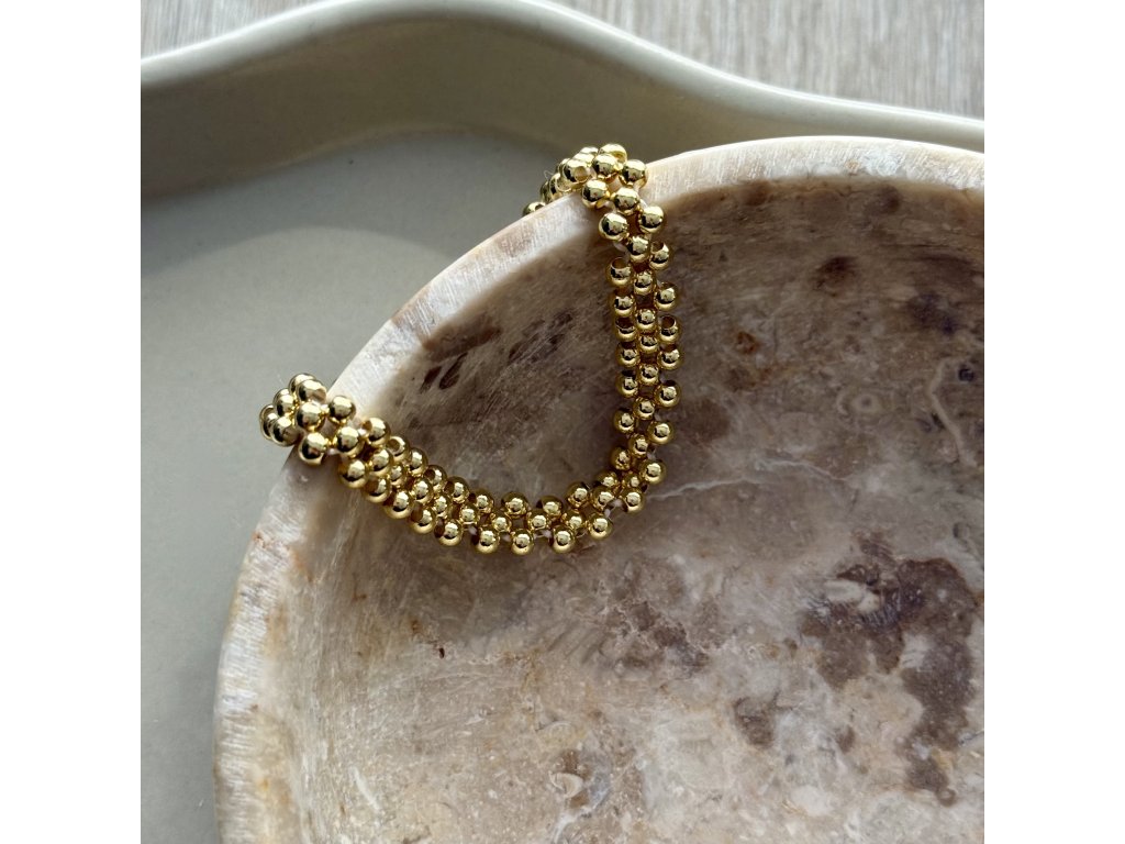Triple gold – ručně pletený náramek ve třech řadách se zlatými nerezovými prvky